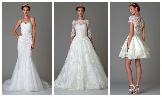 For Marchesa’s fall 2016 bridal collection, designers Georgina Chapman and Keren Craig focused on metallic and sequin embroideries bringing a touch of shine to their wedding dresses.