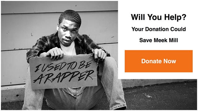 The website starts off with generously advising that giving is now an efficient way to ‘Save Meek Mill.’ With an image of Meek holding a sign ‘I used to be a rapper.’ It’s a non-profit organisation which was put together to give back to youthful Rap fans headed in the wrong direction according to the site.