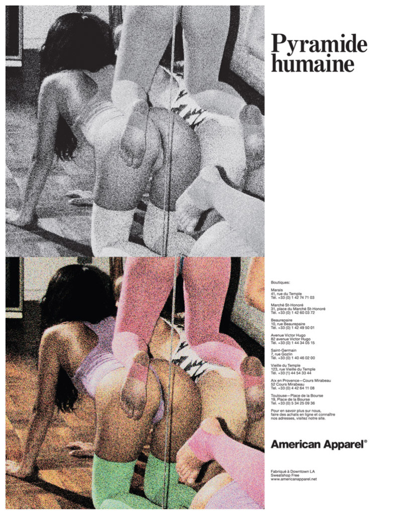 The American Apparel advertising campaign has become synonymous with the words, BANNED, sexy, provocative, soft porn and even borderline racist (see made in Bangladesh advert below).