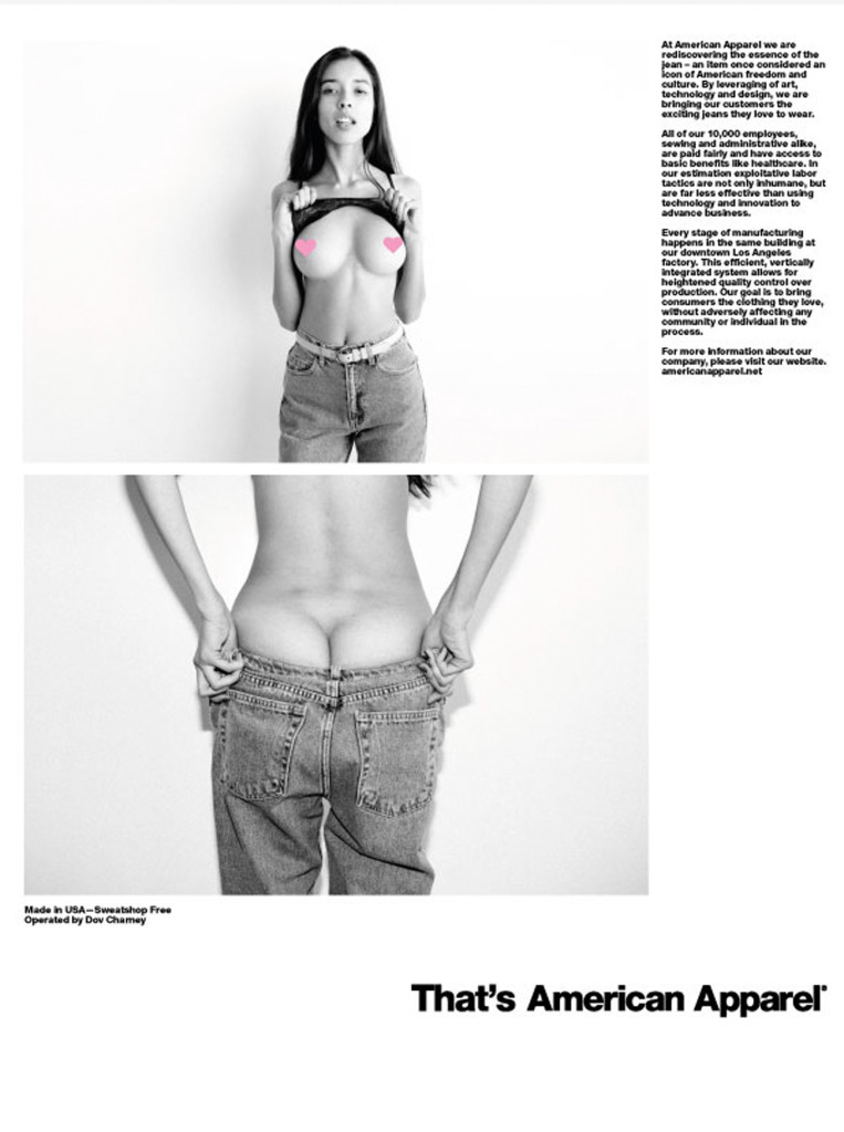 The American Apparel advertising campaign has become synonymous with the words, BANNED, sexy, provocative, soft porn and even borderline racist (see made in Bangladesh advert below).