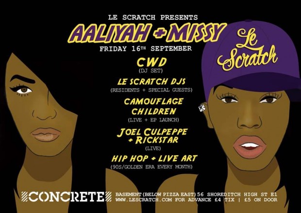 September’s Le Scratch is paying homage to the most iconic ladies of RnB and Hip Hop – Aaliyah and Missy Elliot. On the night you will hear their stupendous back catalogue and be taken back to the 90’s in style. You can e-mail Le Scratch your favourite Missy and Aaliyah tracks to get yourself free entry before 10.30.