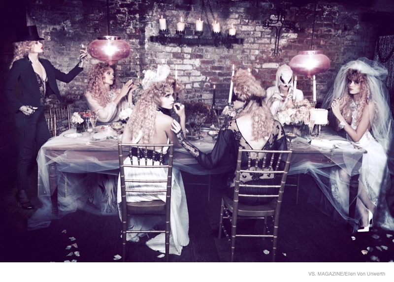 This follow’s on from her ethereal spread (below) for Vs. Magazine with a seductive video where she plays bride and groom. Captured by Ellen von Unwerth, the Australian beauty casts a spell set to the tunes of ‘I Put a Spell on You’ by Nina Simone. Clad in bridal lingerie, a sexy black tux and plenty of lace, Abbey is the main attraction no matter the look.