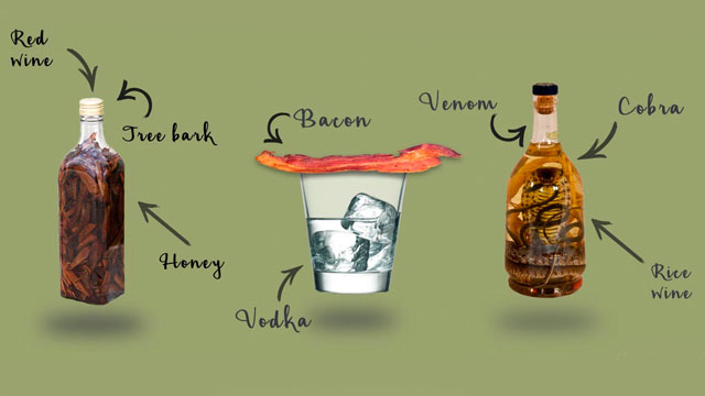 A controversial tipple with a real bite, Laos’ snake wine is made by fermenting rice wine with the body and venom of a cobra!