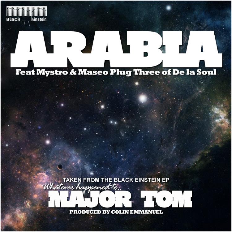 Taken from the forthcoming David Bowie-inspired EP by Black Einstein, titled Whatever Happened To Major Tom, “Arabia” features spirited UK emcee Mystro along with Maseo aka Plug 3 from Hip Hop legends De La Soul.