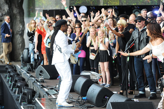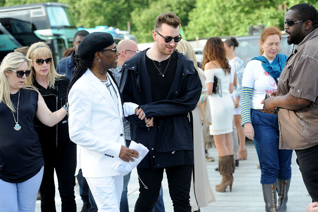 - Nile Rodgers and Chic invited a crowd up on stage to dance, including Sam Smith and Cara Delevigne, who also attended/danced on stage this summer