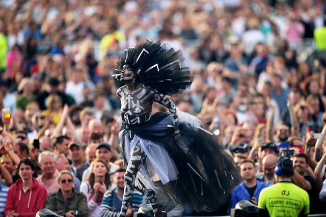 - Grace Jones was a series of mind-blowing moments and incredible costumes (or lack of). Plus, that moment she rolled along and then dropped off the stage while still singing…..