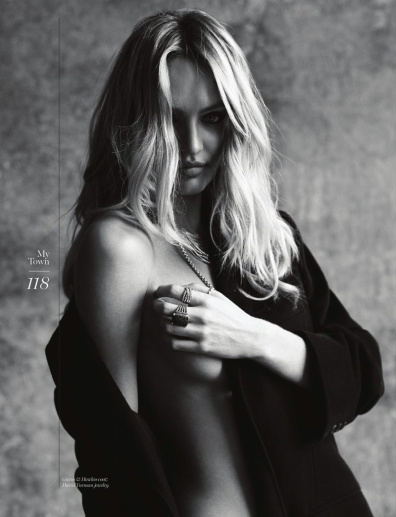 Candice Swanepoel poses nude for My Town magazine cover story. The blonde bombshell poses in these black and white images photographed by Sante D’Orazio.