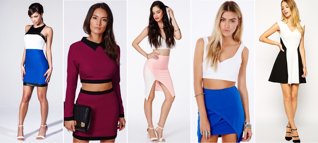 If like us, you’re a little bit colour blind and cannot seem to fully grab the concept of matching colours whether that be compound colours, complimentary colours, shades or monochromatic, you can simply click on your favourite item below and buy it. Boohoo, AX Paris, TopShop, Missguided and Asos all have a good colour block selection of outfits and that’s why we decided to gather our favourite items from all your favourite online outlets in this simply easy to shop list.