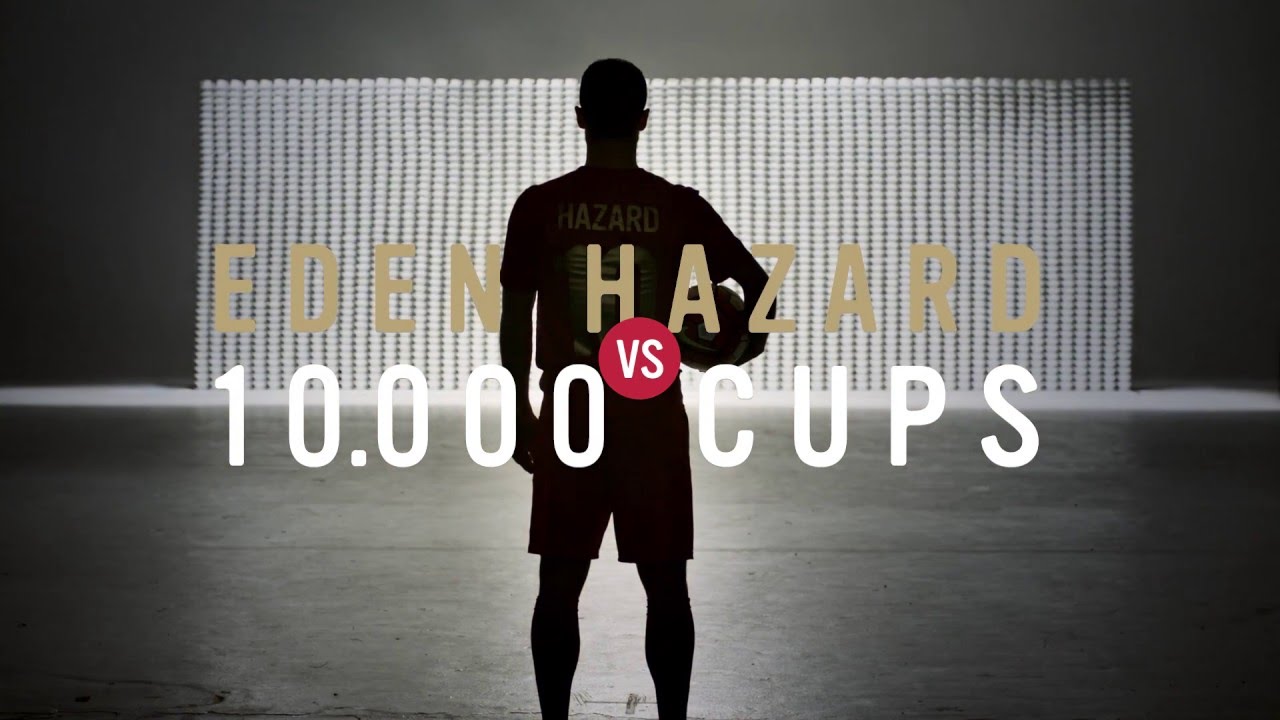 Watch this awesome video as Chelsea player and Belgium national Eden Hazard shows his talents vs 10,000 cups.