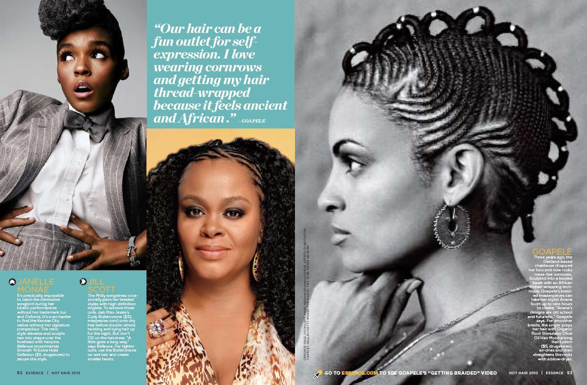 Goapele: “Our hair can be a fun outlet for self-expression. I love wearing cornrows and getting my hair thread-wrapped because it feels ancient and African.”