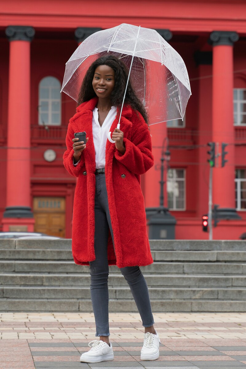When styling red into your winter wardrobe consider switching out your usual neutral basics for a red alternative. For example, upgrade your basic black longline coat for a dark red option, or accessorise your looks with red detailing. Favourites include cherry red heels for sophistication and elegance, or dark burgundy winter accessories like gloves and knitted scarves.