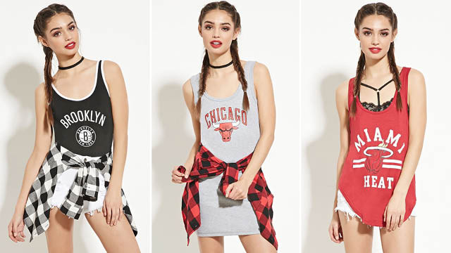 The lineup includes bodysuits, tank tops, bralettes, shorts and hoodies. These pieces are perfect for pairing with your favorite jeans or jacket, and are sure to be conversation starters. Check out more Forever 21 x NBA clothing below.