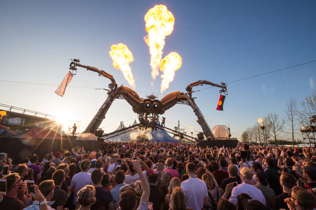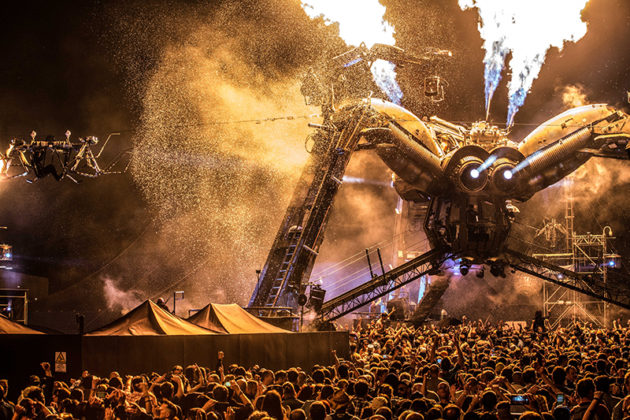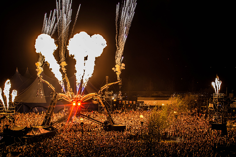 With 3 main outdoor stages, ‘The Afterburner’, ‘The Bug’ and the most astonishing stage of them all, ‘The Spider’ which featured a 50ft tall gigantic robotic spider as its centrepiece.