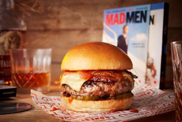 Tom Barton, co-founder of Honest Burgers, said: “Collaborations are a great chance for us to play around with different flavours, so when Mad Men came along we knew it had to have a bourbon influence. I just hope I’ve done Don Draper proud.”