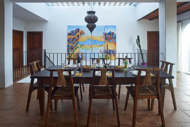 The living room boasts a Flat screen TV, Bang & Olufsen stereo (the kind you wish you had in your own living room at home). The huge L shaped suede sofa is perfect for lounging, Dyson Air-Blade fans within the rooms, glass dinning table with eclectic cutlery for serving dinner. What more could you possibly want from a Villa?