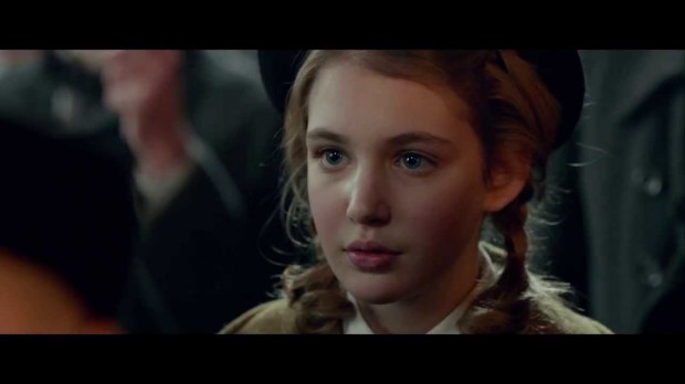 The Book Thief trailer gives us a first view of the movie, and also we get to see a conversation between Liesel and Max. He asks Liesel if her eyes could speak what would they say. That is a really touching scene, as we get to understand that they developed a special connection based on the idea that they both do not belong. Max is like an older brother to Liesel. He starts to show her the world through books, literature and thoughts. She is illiterate so her new foster dad, Hans starts teaching her how to read.