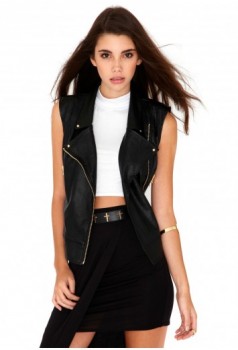 Coco Rocha wore this leather vest to Rebecca Minkoff Fall 2013 fashion show during New York Fashion Week. Copy her look with this Valene Sleeveless Biker Jacket (£35.99).