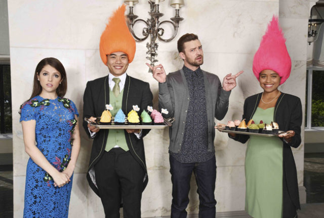 Featuring original music from Justin Timberlake, and soon-to-be classic mash-ups of songs from other popular artists, the film stars the voice talents of Anna Kendrick, Justin Timberlake, Russell Brand, James Corden, Kunal Nayyar, Ron Funches, Icona Pop, Gwen Stefani, plus Zooey Deschanel, Christopher Mintz – Plasse, Jeffrey Tambor, Christine Baranski, Quvenzhané Wallis and John Cleese.