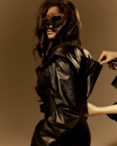 Kendall’s beauty look is all about effortless glam. Her tousled hair and softly defined makeup—featuring bold lashes and berry-toned lips—add a touch of allure, rounding out a look that’s as striking as it is timeless. Shop the collection at calzedonia.com