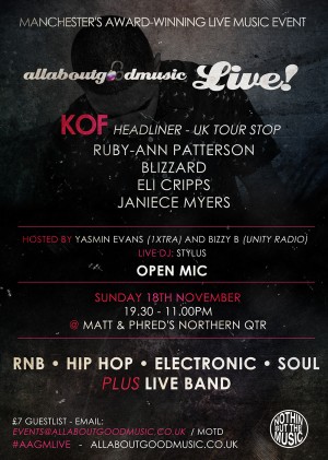 Liverpool powerhouse singer/songwriter KOF will be headlining the event as well as performing material from his new EP “An Alternative Soul.”