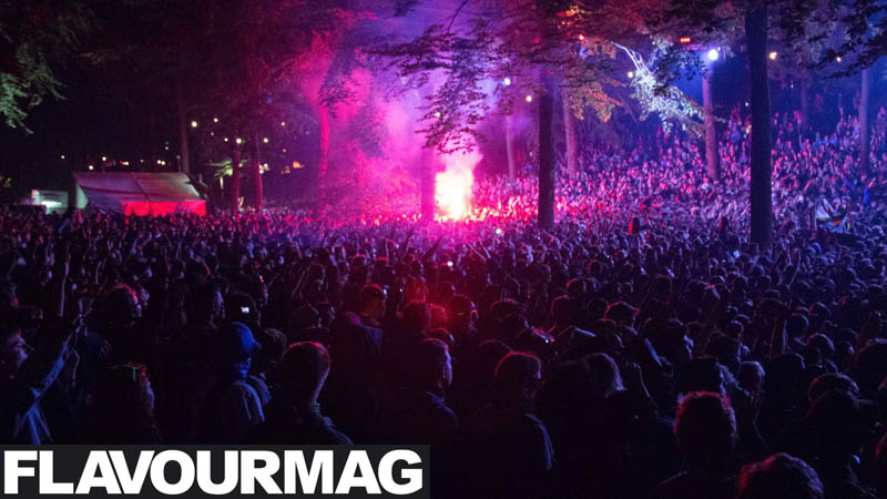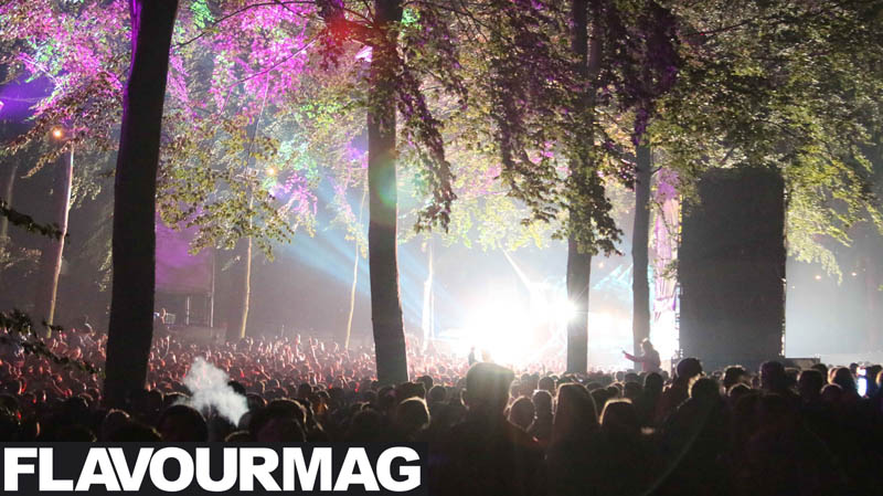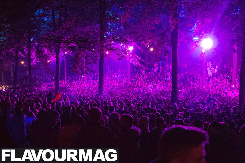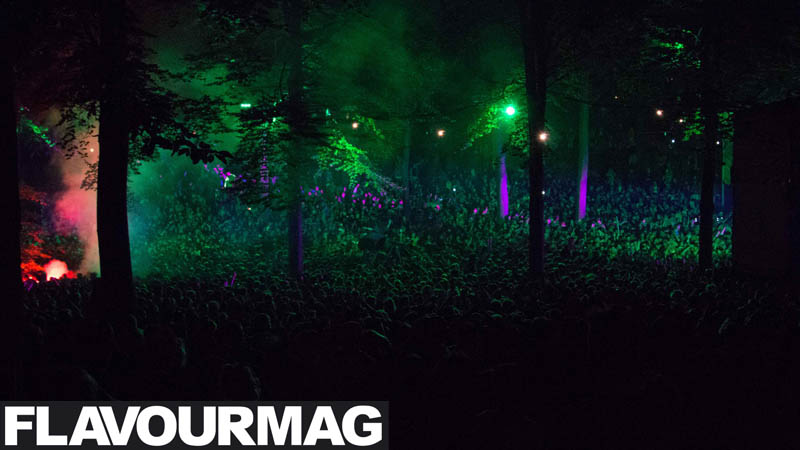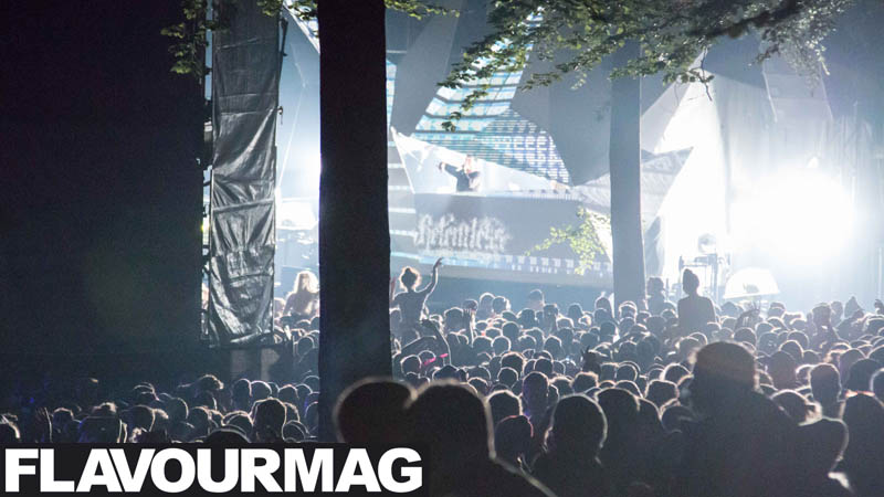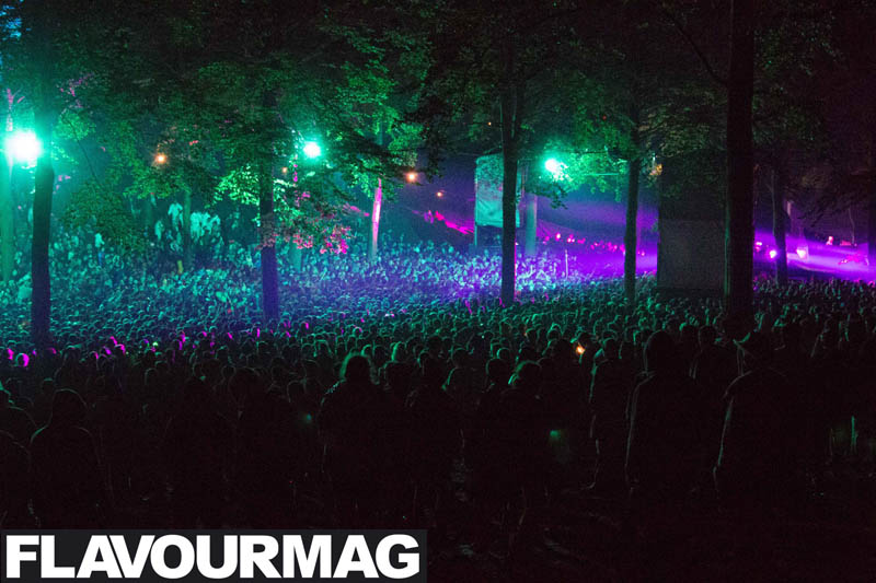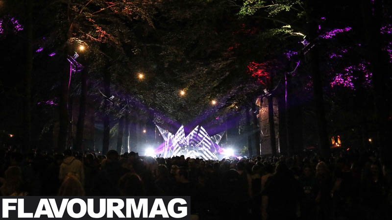 At this stage the main arena was winding down at this point but the Relentless Stage was going strong. To picture the scene imagine a small valley with trees on either side on the slopes of the hill, in the middle and at the end of the valley was the relentless stage a futuristic looking neon emblem shining bright in the distance. As you walk up to the stage neon lights hit the trees and the people making everyone into raving like spectres you pass two giant Neon looking signs with the words Relentless… almost like an instruction of what’s on the other side.