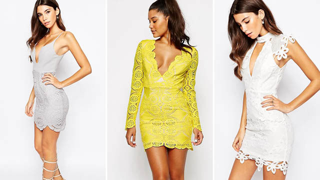 From Lipsy the Love Triangle Plunge Neck Mini Dress only £42.00 This lace mini bodycon dress is the answer to all of your going out wardrobe problems! Featuring a sleeveless design and a deep plunge neckline, it really is a show stopper.