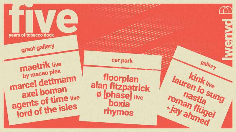 Car Park will offer the tougher techno sounds through Alan Fitzpatrick, Boxia and Ø [Phase] Live will bring the tougher sounds. Whilst the legend Robert Hood will bring his Floorplan show to the depths of Tobacco Dock.