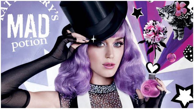Back with a bang, we see Katy Perry in a new fragrance campaign for her ‘Mad Potion’ scent as a sexy magician wearing a low-cut waistcoat and top hat.