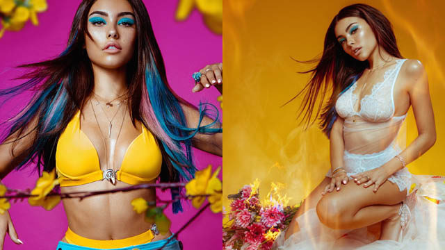 The colourful make and photo shoot see Madison rocking everything from Yellow Bikinis to Racy White Lace Lingerie.