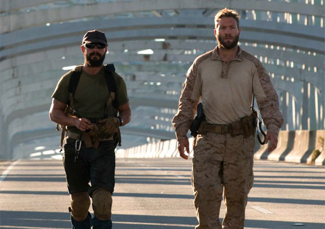 With no coherent flow, Man Down follows Gabriel Drummer (Shia LaBeouf), a US Marine flanked in the horrors of war, severely affected and suffering from a mentally dilapidating form of PTSD, across four different timelines. In one, before Gabriel is sent off to Afghanistan to do his duty for his country we see him as a proud family man deeply in love with his wife and doting on his son. Another places him in the heart of the war zone amongst his fellow marines witnessing and dealing with the riskily murderous patrols which are the cause of his PTSD. A third places him in the office of a military psychiatrist, played by Gary Oldman, in a verbal combat of conversation as the psychiatrist tries to unravel Gabriel’s state of mind after his tour of duty has his best friend murdered before his very eyes. In the final and most promising timeline, Gabriel’s donning a heavyset beard, personality and appearance of the man he once was vanished into the ether. In what appears to be a dystopian world, Gabriel roams the streets searching for his kidnapped son.