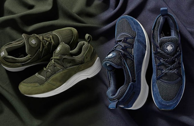 Both shades share the horizon, as the two run parallel, conveyed with a 3M reflective fleck in the laces, reminiscent of the stars in the atmosphere around us. Built upon the iconic panelling of the Nike Air Huarache Light, the uppers have been constructed with a soft suede alongside a thick sandwich mesh.