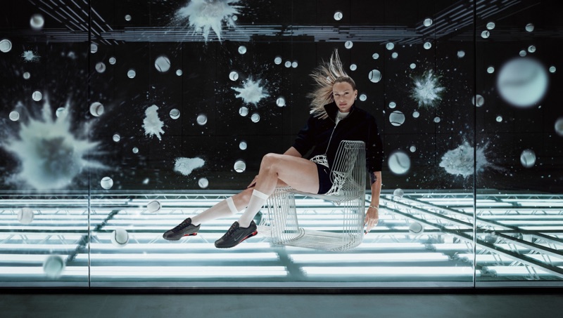 \nStyled with mesh layering, digital grid patterns, and that unmistakable post-sport glow, the visuals drip with dystopian drama. Aryna’s presence is commanding—grounded, fierce, and fully in motion. Whether she’s crouched in a neon-lit cube or striding through the night in billowing pleats, the message is clear: the Shox Z is for those who move with impact.