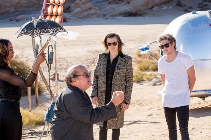 The band filmed the video in LA recently and it features Hollywood star Danny Devito playing the part of their video director and we have the behind the scenes images for you all.
