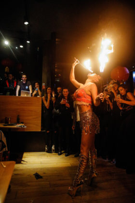 The night saw 1,300 dim sum pieces, 450+ delightful cocktails, contortionist, burlesque dancer, fire girl plus DJ and drinks by Tsingtoa Beer.