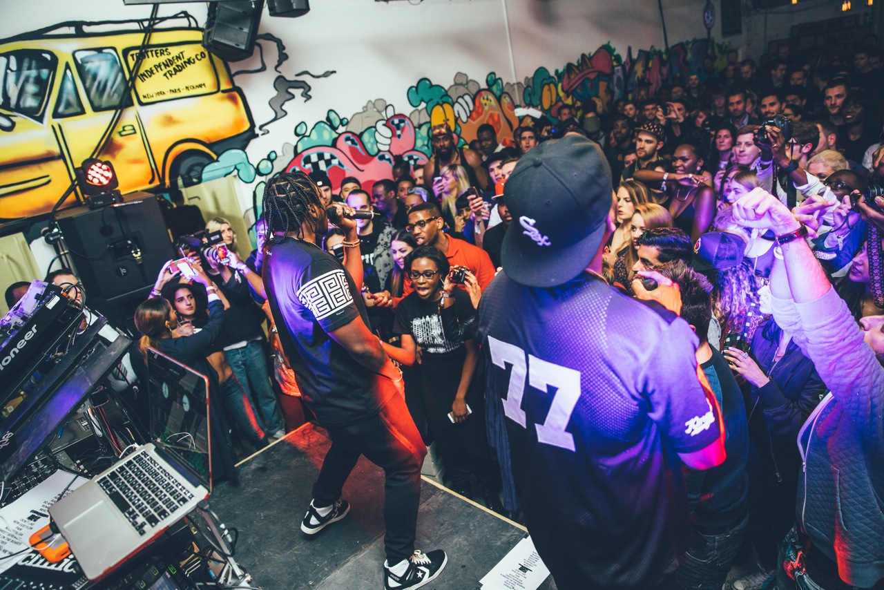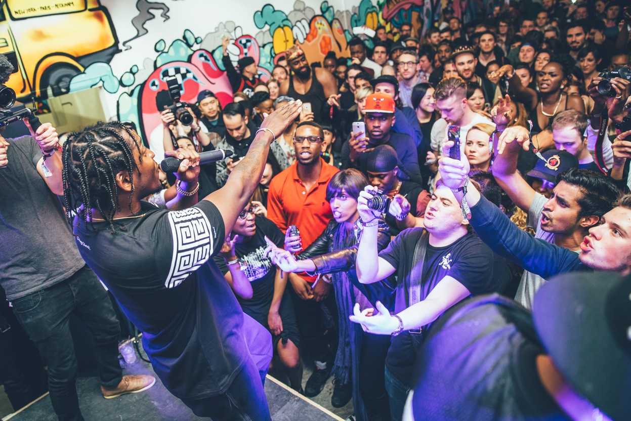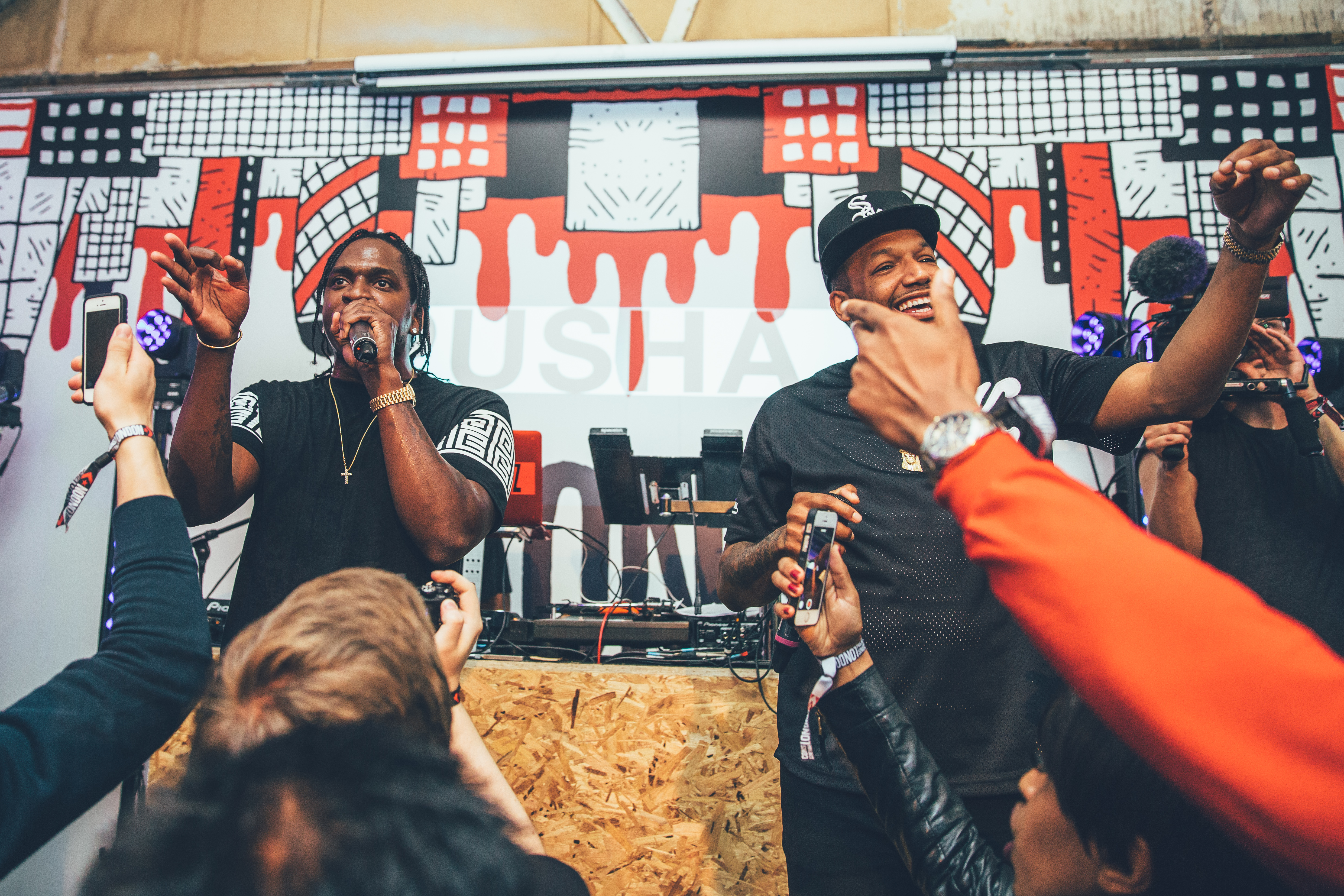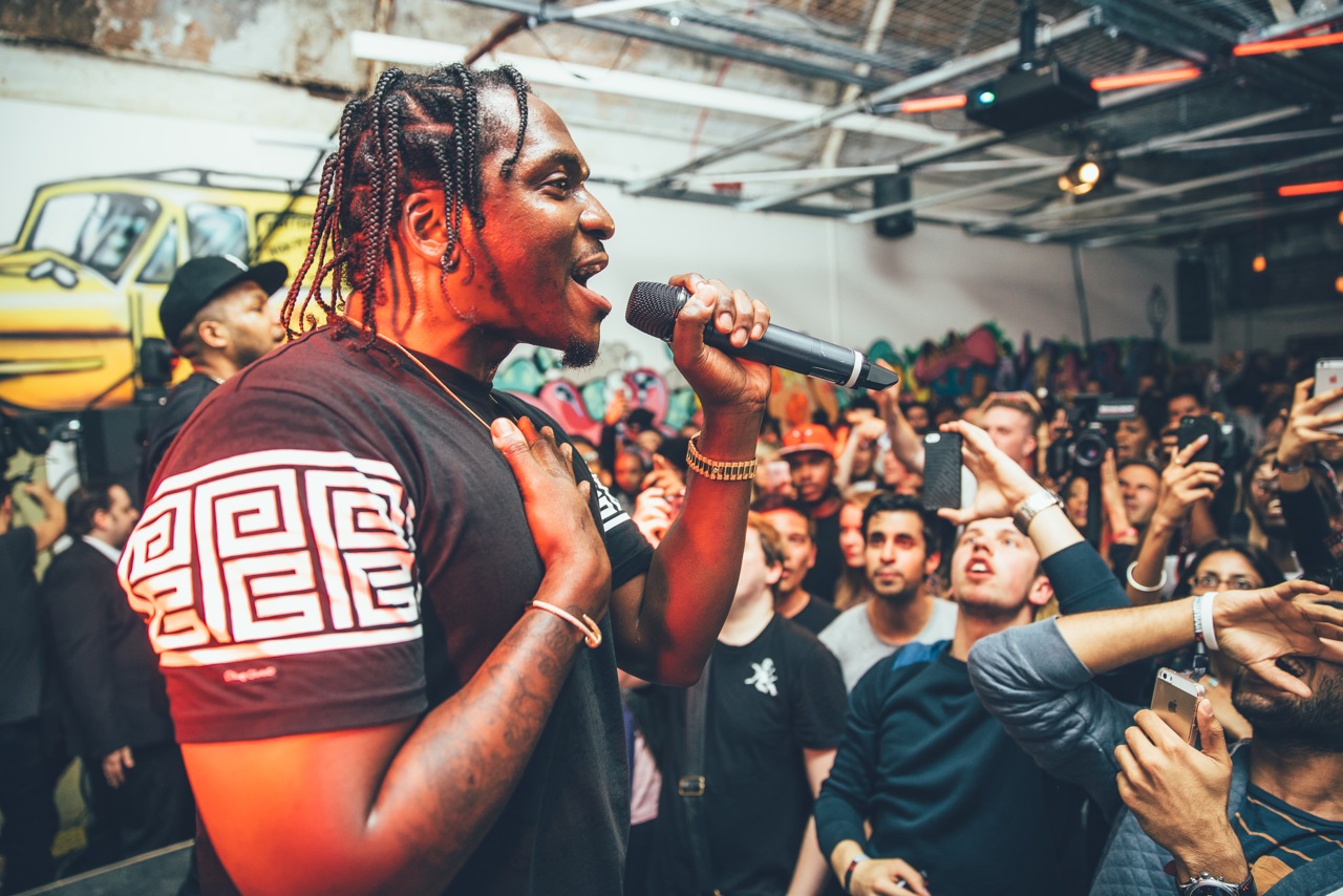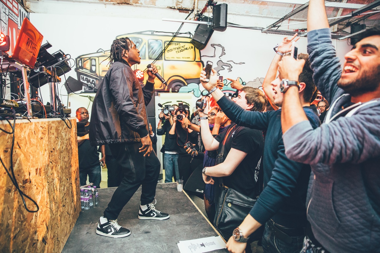 So last Thursday Converse gathered a load of us media and a select few lucky competition winners and dropped us in a  warehouse in Peckham for the launch party of The Cons Project. The Cons Project is a series of workshops, events and parties for London’s creative community – an audience which Converse serves so well. The launch party featured GOOD Music artist Pusha T as well as support from the energetic UK rap duo Krept & Konan. Pusha’s catalogue of hits coupled with the intimate feeling of the Converse Cons warehouse quickly turned this into one of my favorite live hiphop performances to date! Check out the pictures below!