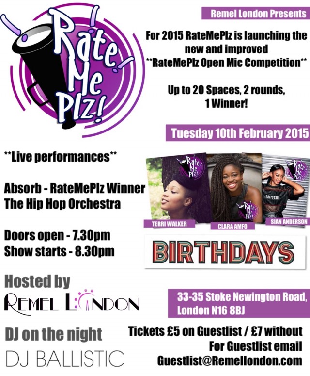 RATE ME PLZ is the popular Showcase and Networking event brought to you by the all round entertainment force Remel London. Now in its 3rd year having brought a platform to a multitude of acts-2015 starts off with purpose for the popular event.