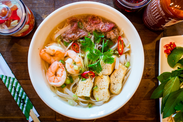 As we walked up to Pho café/restaurant in Covent Garden; we peered through the window at what looked like a dimly lit café, with high stalls around the window, and large benches to accommodate big groups. The décor was a modern street style theme. A diverse mix of people enjoying the food, as you would expect in London, with two students connecting to the free Wi-Fi on their Macs, to a group of Chinese tourists getting stuck in, and a gentle buzz of activity in the air.