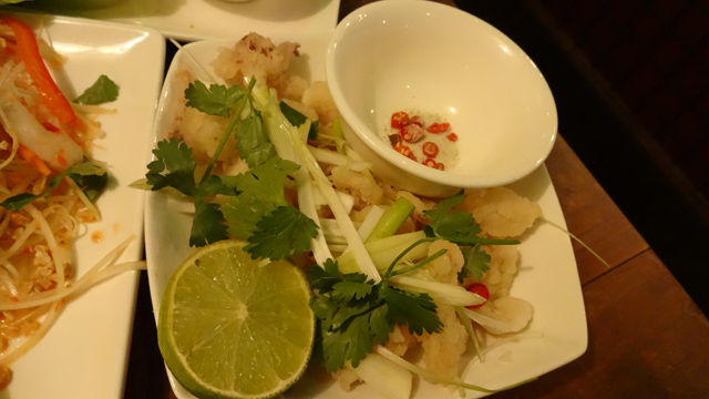 and delicate. It comes with a dipping sauce whereby we were instructed to squeeze a lime into a mix of salt and pepper and give it a good mix, and then dip away. This is very zingy on the tongue.