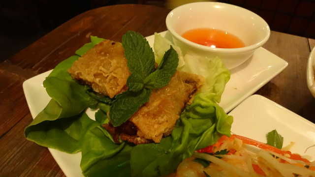 Not gonna lie I was STARVING! First things first; the starters. Muc Chien Goin -translation- tender fried baby squid. This was beautiful; I mean really. It’s coated in a light batter, not greasy or heavy, light tender