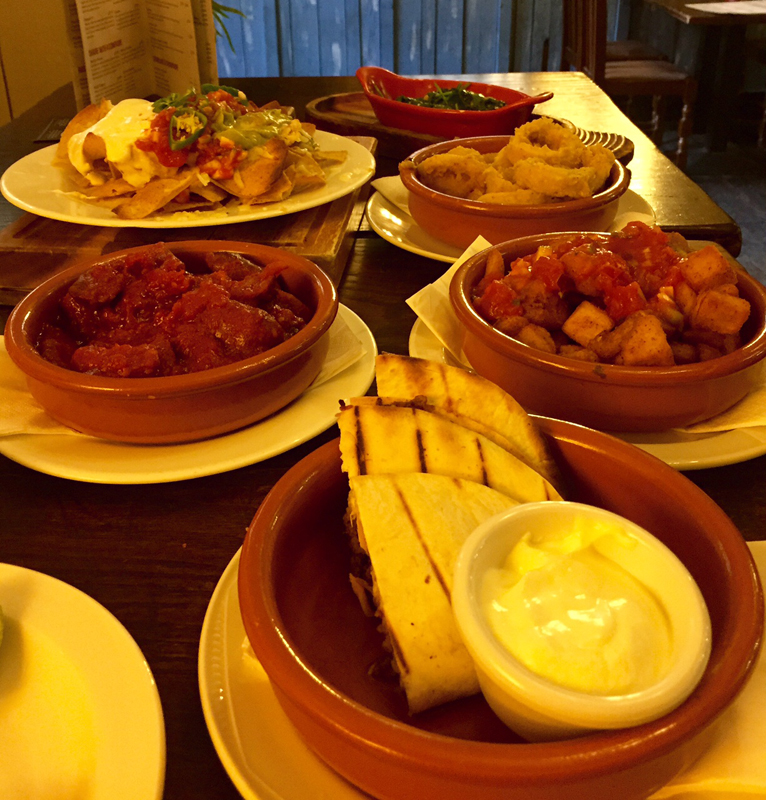 As Cuba is renowned for it’s Tapas, we decided to share six dishes; pan-fried Chorizo in a red wine sauce, Nacho’s Rancheros with chilli beef, Calamari de Cuba with garlic sauce, Chicken Quesadilla’s, Patatas Bravas and Sautéed Garlic Spinach.