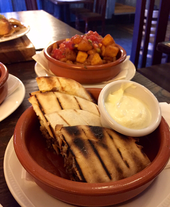 The Patatas Bravas were perfectly crispy on the outside and were paired with a beautiful ‘homemade’ salsa, the Calamari were cooked to perfection and were complimented by a tangy garlic mayo, whilst the chicken quesadilla’s were full of flavour and suitably gooey with a crunchy exterior.