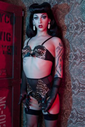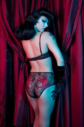 Rocking Playful Promises seductive new lingerie line Violet Chachki teases the camera in stockings, suspenders, bra’s & panties and more.