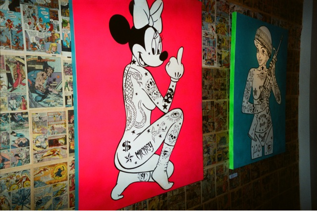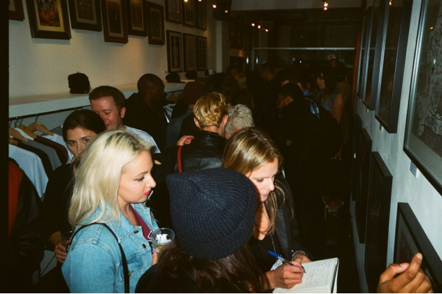 His new collection launch party was located at the The Circle tattoo studio in London’s SOHO. A boutique type den of inequity saw Rugman, our street artist work jump out from the perfectly arranged art. Drinks were flowing with litres of Sailor Jerry rum and beer available for the guests, and fine tunes provided by DJ Pete Eves. Big names came down to supported the launch including Ashley Walters, Leo Gregory, and Jason Maza, Nick Nevern, and Vaz Blackwood. Check out the pictures and video from the party below.
