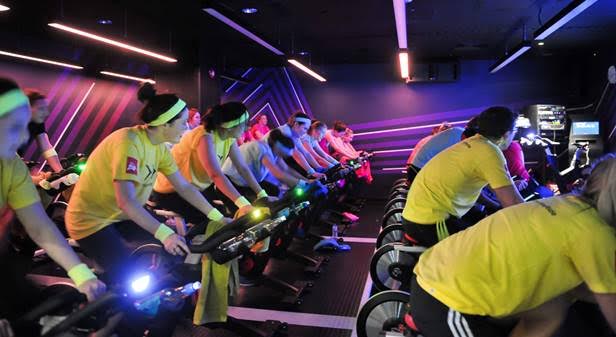 Each class is divided into three teams – the yellows, pinks and blues, or “Packs” who go head-to-head in a series of challenges. The effort of each rider contributes to the progress of their team, which is projected on a cinema-style screen so that riders can keep tabs on their progress.