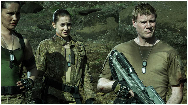 Iceland is extraordinary; It has this sort of lunar landscape it is like being on the moon. But the weather was dreadful, it did nothing but rain. It was quite arduous, quite a physical shoot because we were wearing all this armour we were always running from A-B and we had all this heavy weapons and all that stuff. On top of that it did nothing but rain which wasn’t expected, we expected it to be all green. So that was something they hadn’t planned for. However, because it was one of those shoots were people were always tired it brought us all together; there was a lot of camaraderie which probably normally happens with real shoulders who have genuinely tough conditions. As we were a bunch of soppy actors (laughs) and not real shoulders we sort of huddled together quite quickly in the tents, around the fire and playing games and all that kind of stuff that brings you together. That helps the filming, it helps build relationships. Its also a really good story I think, the whole premise that there is only 2 seats on the spaceship and you’ve got like eight characters all trying to get out of this place. In terms of drama the writers have done a great job.