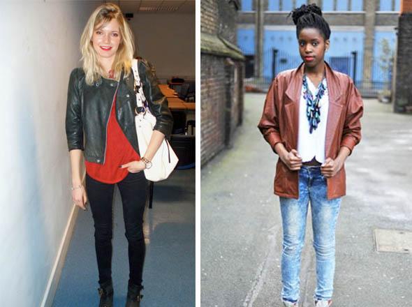Biker chic is back this season – and with a twist! So to accommodate the spring/summer theme, look out for leather jackets available in an assortment of colours. Also keep an eye out for detail, such as zipped motorcycle jacket sleeves, the quilted effect, and the trench coat-style jacket. English student Alice Wagstaff Sherwood, 21, (above, left) goes for a vintage leather jacket, with a Guess Watch, Topshop bag and jewellery. While sales Assistant Temi-la Johnson (above, right) teams a rustic-red vintage leather jacket with 80s-inspired tailoring from Tartelette, statement jewellery and a topknot bun – one of our favourite hairstyles of the season!