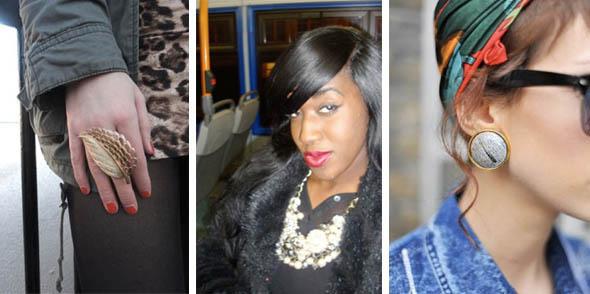 Designers have created lots of statement jewellery for this season: huge, colourful and unusual pieces to remember! They’re made to stand out rather than just complement outfits, so don’t be shy. Oversized bracelets, extra-long and big earrings, extravagant necklaces for spring/summer 2011. Student Freda Kwakye, 21, (above) dresses up a simple black outfit with Topshop statement necklace and earrings and ring that will get you noticed.