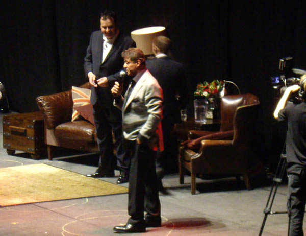 During his talk in England the ‘peoples champion’ expressed to the entire audience that they should “grab the world by the throat” every day and never give up. He said that so many people are just “existing” when they could be chasing their dreams. Sly said that getting Rocky 6 made was one of the toughest things he ever went though. The studio’s thought of him as ‘finished’ and it was up to him to prove he was still relevant. Sly’s life story speaks to every race and generation and serves as a message that the world doesn’t owe you anything… you owe it to yourself to succeed. That’s a great message to take away from an evening with a Hollywood superstar.
