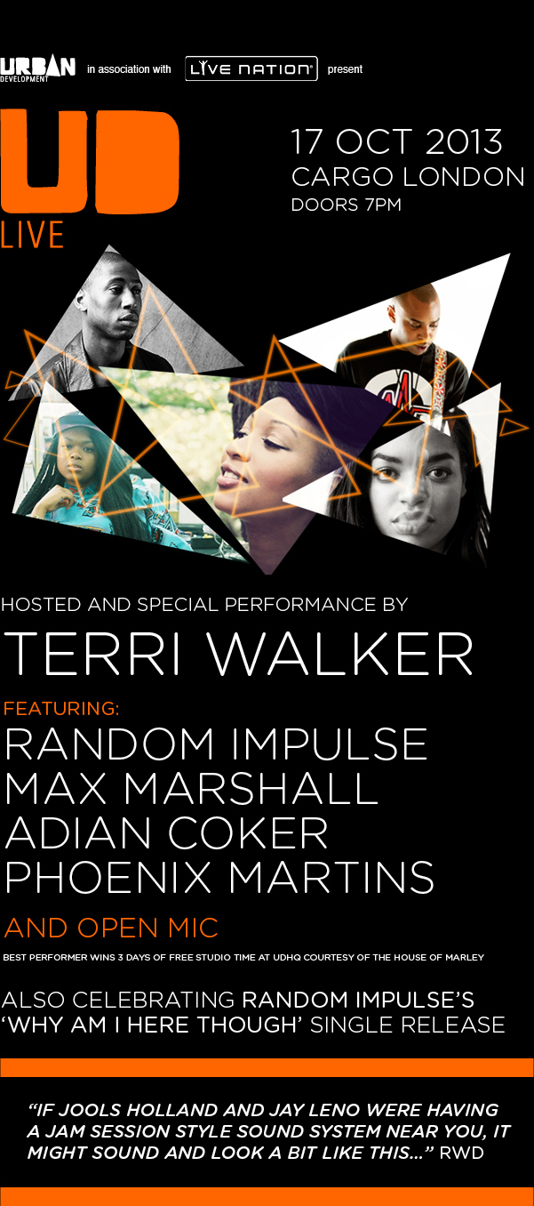 Urban Development and Live Nation return with the next installment of UD Live on Thursday 17th October with another exciting line up. With so many live nights flooding the London scene, UD Live offers something totally unique and seamlessly fresh. Favourited by Artists, Managers and A&R’s, the night brings people together from across the world of music.
