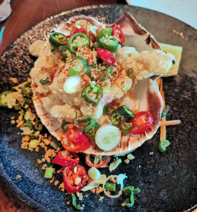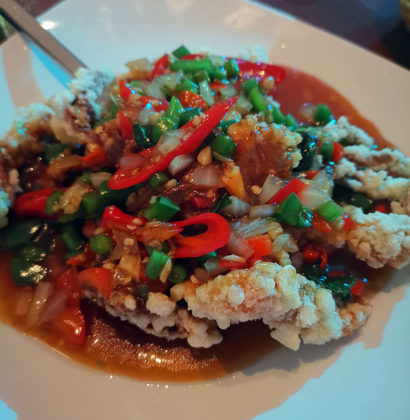 Our order consisted of Salt and Pepper Squid, Soft Shell Crab with ‘Kaprao Sauce’, Vegetable and Tofu Satay (my guest was a veggie), Butterfly Prawns, Pad Priew Waan Tofu and a Coconut Rice paired with wine from Monsoon Valley which they say are made in a style that compliments Thai food, enhancing and maximizing the flavours… Take a look at the photos below and try not to drool.
